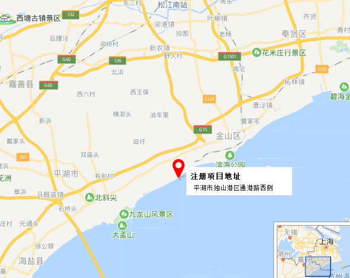 本工程位于杭州灣北岸嘉興港東部的獨山港區石化作業區,東側距離浙滬分界線約2.5km、距離上海國際航運中心洋山深水港約77km,西側距嘉興港乍浦港區約16km,北側距離江浙滬交界線約50km。